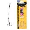 De houten pen en de dreggen fixeren de aasvis op de montage en geven hem een drijvend vermogen..