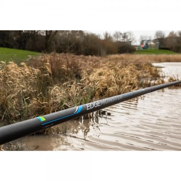 De Preston Edge Monster Margin 10M vaste hengel wordt geleverd in een lengte van 10 meter inclusief miniverlengdel en is gemaakt van een hoge kwaliteit carbon. Deze hengels is dan ook sterk genoeg om een grote karper onder de eigen oever te haken en drillen, maar deze hengel heeft ook de juiste balans om op volle te vissen op karper en F1-tjes. De extra lengte is daarbij een grote hulp om die gedeelten te bereiken die normaal gesproken buiten bereik liggen van een conventionele margin vaste hengel. De hengel wordt geleverd met een reserve, tweedelige power topset, naast degene die al in de hengel geplaats is. Beide zijn klaar voor gebruik en voorzien van een Roller Pulla Bush en een PTFE Bush. Het complete pakket wordt geleverd in PVC kokers voor een veilig vervoer .