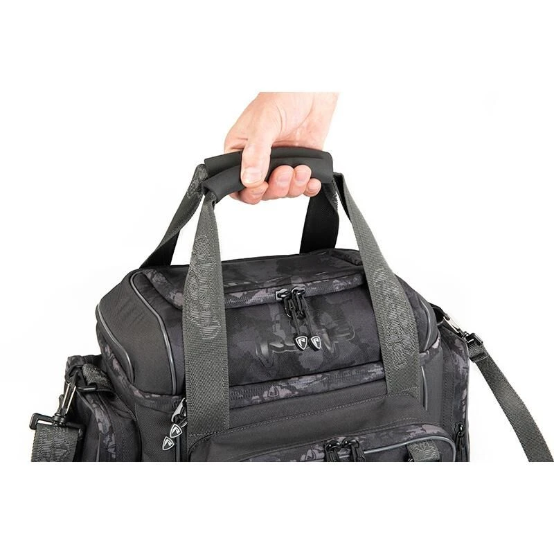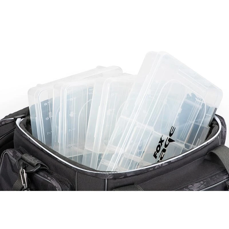 De Fox Rage Voyager Camo Medium Carryall is een veelzijdige carryall die veel opslagruimte en extra’s biedt. De tas is volledig gevuld met tackleboxen zodat je alles kwijt kan wat er nodig is bij een dagje roofvissen. De tassen zijn gebaseerd op het nieuwe Rage Camo ontwerp. De tas is verder afgewerkt met Heavy duty ritsen en een gevoerde schouderriem. De toolhouder met ingebouwde veer maakt het mogelijk uw favoriete onthaaktang altijd zeer dicht bij je te dragen, en makkelijk te gebruiken.